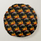 Orange Bird of Paradise Plant Pattern on Black Round Cushion