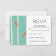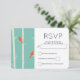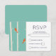 RSVP card with an illustration of birch trees with orange birds sitting on their branches. Retro green coloured background.