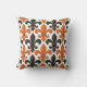 Orange Black Baroque Fleur-de-lis Pattern Design Cushion