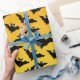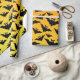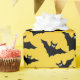 Spooky and adorable Halloween flock of black bats with eyes on yellow orange ombre gradient.