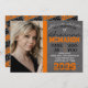 Orange & Black Modern Chalkboard Graduation Photo Invitation.