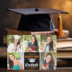 This modern orange and black senior graduate photo collage features your favourite 5 student photographs. This graduate announcement features classy white typography along with your high school or college name for the class of 2025. Customise with your graduating year above the white grad cap for great cards.