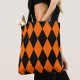 Orange Black Harlequin Diamonds Checkers Design Tote Bag