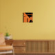 Crop to standard frame sizes or your own personal preference (available in small to large sizes of various proportions and different paper types). Featured is a bold, minimalist, geometric, and abstract design in black shapes on a vibrant orange background. A lively, upbeat, and contemporary look for home and workspace.