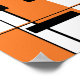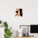 Crop to standard frame sizes or your own personal preference (available in small to large sizes of various proportions and different paper types). Featured is a bold, geometric, and abstract design in orange and black shapes on a white background. An upbeat, contemporary look with retro elements for home and workspace.