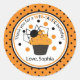 Get into the spooky spirit with this orange and black polka dot Halloween spider cupcake birthday 1.5" round favour sticker! Adorable and festive, it features a cute spider sitting on a colourful cupcake perfect for adding a touch of fun to your little one's celebration.