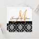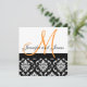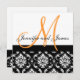 Elegant Orange Monogram on black and white Damask Wedding Invitations. Layout Design by Elke Clarke ©2009. Graphics licensed for commercial use.com and WhiteWhimsicalWeddings.blogspot.com. Customise with your monogram names and wedding colours. Add all your wedding information on the back of the card using Zazzle's easy to use menu prompts. Contact luxuryweddinginvitations@gmail.com for help in coordinating wedding invitation suites or "day of" items.