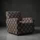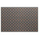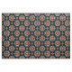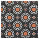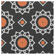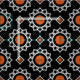 Elegant fabric design featuring a seamless pattern made of orange and white geometric shapes on a black background.