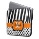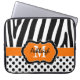 This 15``chic and trendy personalised orange, black, and white zebra stripes and polka dots laptop sleeve has text boxes for you to add your name and monogram. ****PLEASE email me if you want a SMALLER size one made up, as selecting it on your own will cause the design and text boxes to slip. If you need help customising this with your own info, please email niteowlstudio@gmail.com for help.