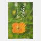 Orange Blooming Poppy Flower On Green Custom Name Tea Towel