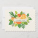 A cheerful orange illustration brings to mind sunny summer days. The design can be personalised with your own message and name. Good for family recipes or bridal showers. The illustration includes hand-drawn images of oranges, slices, flower blossoms and leaves in bright colours including orange, yellow, green and cream.