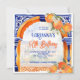 Orange citrus azulejo majolica talavera tiles arch blue orange Mediterranean tiles birthday party template invitation instant download, for spring summer vibrant colour themed functions