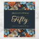 Orange Blue Flowers Black 50th Birthday Wine Label