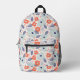 Orange & Blue Modern Flower Pattern Printed Backpack