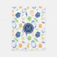 Orange Blue Owls Feathers Pattern Monogram Blanket