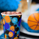 Orange & Blue Paint Splatter Basketball Birthday Paper Cups