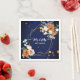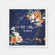Orange and white roses sage eucalyptus greenery navy blue background gold geometrical frame floral Mr & Mrs personalised name wedding napkins.