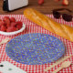 Orange, Blue Scrolled Diamond Pattern Paper Plate