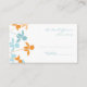 Wedding table place setting cards in elegant and modern light blue turquoise, white, and tangerine orange floral pattern, also available in many matching wedding products, contact us to request a colour change or custom design.