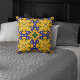 Orange Blue Yellow Spanish Tile Pattern Cushion