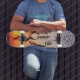 Personalised, skateboard design. Beautiful colour board with a black text on it.