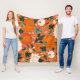 Orange Boho Pumpkin Autumn Floral Pattern Fleece Blanket