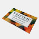 Stylish WELCOME Doormat with the wording WELCOME & BE BLESSED ALL WHO ENTER HERE (EXCEPT TRESPASSERS). The background is an orange bokeh pattern. All text is CUSTOMIZABLE so you can amend the wording to suit your needs.