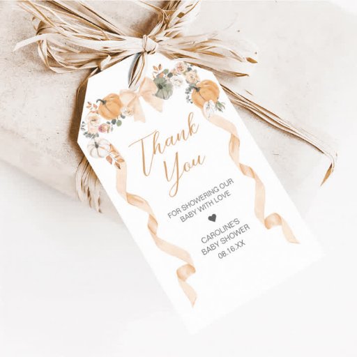 Orange Bow Pumpkin Baby Shower Thank You Card