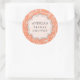 The sticker is made on wonderful paper and had no problem sticking to the bag that I purchased to put it on. I wanted to find a design that would be cute for the bride and groom and this one fit the bill as it has cute "bees" buzzing around and the wedding was taking place in a town called "Bee Cave". The packaging was great and protected the stickers. The website is easy to navigate and there are so many color choices. I had no problem finding a color that the bride was using on everything else selected. The design was adorable and there were many to choose from. You can make the figure as larger or smaller and you can place the photo and writting whereever you want to in the sticker. The printing is fabulous..better than expected.