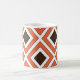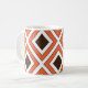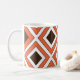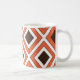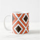 Orange Brown Diamond Geometric Pattern Coffee Mug designed by Nisha Prabhu. This coffee mug features a striking geometric pattern in shades of orange and brown. The pattern consists of diamond shapes arranged in a repetitive formation. The combination of warm colours creates a visually appealing and energetic design. Whether you're enjoying your morning coffee or afternoon tea, this mug adds a touch of style and sophistication to your drinkware collection. It is also suitable as a decorative piece, enhancing the aesthetic appeal of any tabletop or kitchen counter.