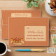 Cute fall orange brown envelope with the watercolor illustration of some pumpkin spice pancakes on the outside left lower corner and a plaid pattern on the inside . You can add the names and addresses using the template fields or you can erase them and leave an empty space to fill them by hand at a later time .