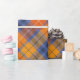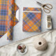 Fall plaid wrapping paper with warm colours such as orange, yellow and purple, which would add a nice touch for a Fall birthday gift, Halloween gift and  more.