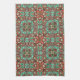 Orange Brown Red Turquoise Green Bohemian Bali Art Tea Towel