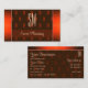 Make a lasting impression with this elegant business card design featuring shimmery orange gradient borders and monogram pattern on a brown background.