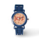 Brighten up your child's day with our Blue Silicone Kids Watch, featuring a playful design with dinosaurs and a personalised monogram. The vibrant blue colour adds a cheerful touch, while the whimsical dinosaur illustrations bring charm and fun. Customise it with a name or initials to make it uniquely theirs. This silicone watch is perfect for kids, offering durability and comfort for daily wear. With its easy-to-read dial and adjustable strap, it's both practical and stylish, making it a favourite accessory for young adventurers.