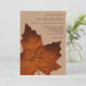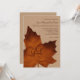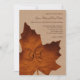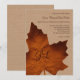 On a burlap coloured background, a large, monogrammed maple leaf accents this invitation, for the vintage wedding. It is shown on the basic paper; however, I recommend the weight and texture of the linen paper.