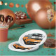 An orange bus parked up. This design looks really effective on these Paper Plates