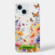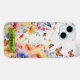This enchanting phone case features delicate orange butterflies with striking black outlines, gracefully fluttering through a vibrant watercolor field of flowers in shades of blue, pink, and orange, with splashes of soft lavender. Adding a touch of fairy tale magic, the case includes a whimsical frame adorned with green jewels and bedazzled stars. This design beautifully captures the essence of a lively garden in full bloom, bringing a touch of nature's charm and a hint of fantasy to your device. Perfect for those who love the delicate dance of butterflies, colourful blooms, and a bit of sparkling elegance.
