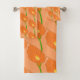 Bath towel set, consisting of a face cloth, hand towel and bath towel with a orange cala lily flower design. You can customise this bath towel set with any text of your choice. Should you require any help with customising then contact us through the message link on this page. Floral design bathroom towel set