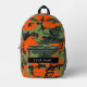 Orange Camouflage Pattern, Your name, Personalise Printed Backpack
