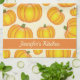 Orange Cartoon Pumpkin Pattern And Custom Text Tea Towel