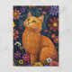 Orange Cat Amid Colourful Blossoms Postcard