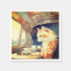 Orange Cat Drinking Tea in a vintage train, surreal art painting for cat lovers.