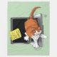 Orange tabby cat on a laptop computer holding the laptop hostage in a post-ti-note ransom note for attention