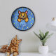 This fun novelty clock includes a faux (printed) denim / blue jean look and includes a cartoon orange kitty cat that appears as if it's sitting inside a pocket! The design also includes "patches" (printed) that resemble the silhouettes of paw prints. Time is kept with printed "buttons." Use the easy template to add your name or your cat's name to the design (or simply delete the sample name "Tabitha" to order without a name). These cute clocks make the perfect gift for any cat owner! They would also be fun for an animal groomer or vet.
