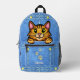 Orange Cat in Faux Denim Pocket with Custom Name Printed Backpack
