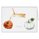 Autumn Harvest Art Design - Tabby Cat Jumping From White Pumpkin to Orange Pumpkin.