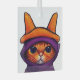 Orange Cat with Purple Witch Hat Halloween Glass Tree Decoration