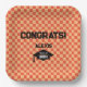 Extend the festive theme of your graduate's celebration right to the party table with our Orange Chequerboard Custom Photo Celebration Paper Plates. Featuring a lively orange chequerboard pattern that matches the graduation announcement, these plates add a pop of colour and personalisation to your graduation party setup.
