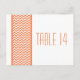 Chic and modern Chevron Border Table Number Postcard featuring a simple chevron pattern border in orange and white. This stylish design will set the tone for an elegant wedding. Easy to customise, simply add the appropriate table number(s) in the text field provided. Click "Customise It" to find more personalisation options.